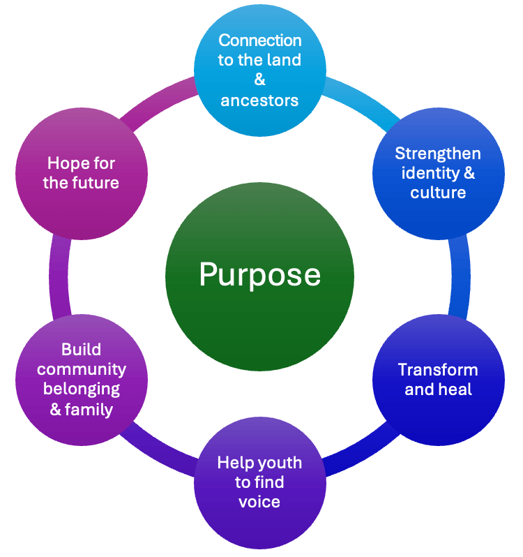 The program supports youth to find their purpose and build their identity, to recognize who they are and connect them back to culture.